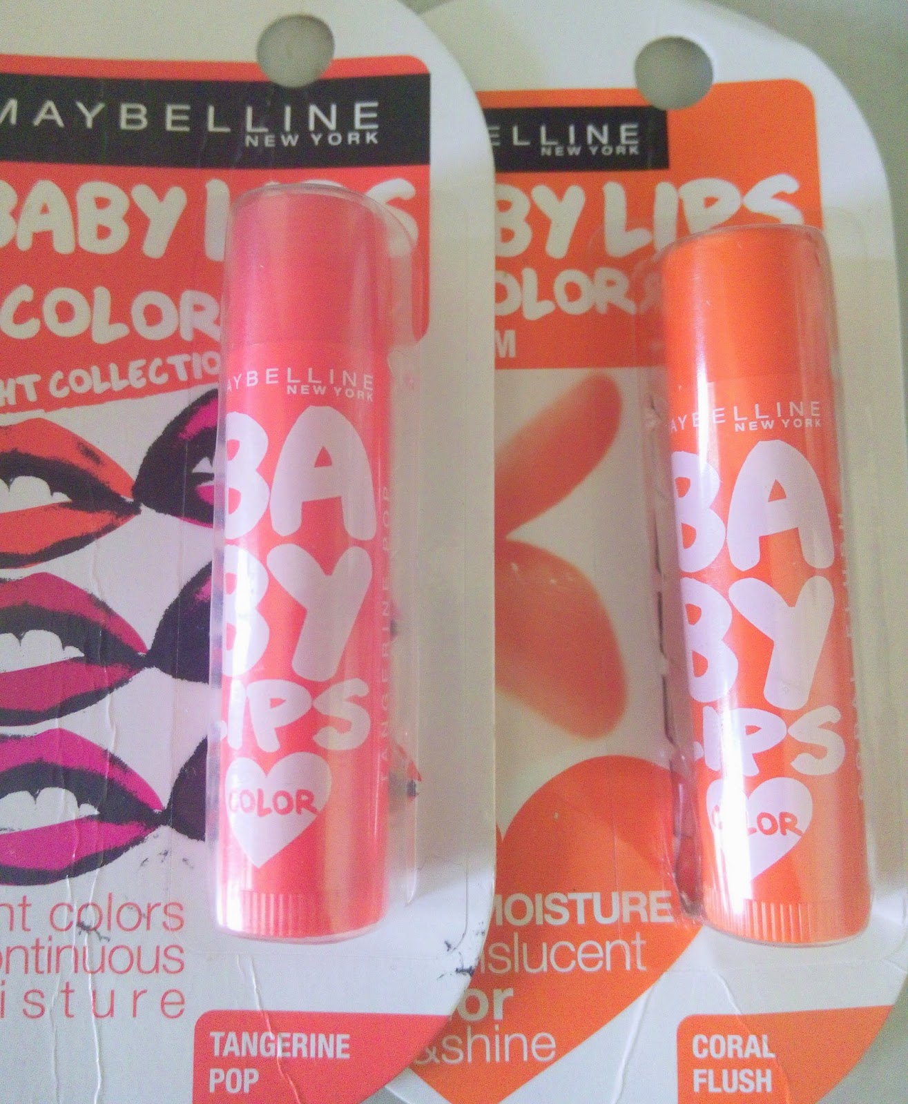 So today I am going to review my new Kiss Kiss Pucker and Pout buddy, the baby lips. I am going to be reviewing the Baby Lips color lip balm Coral flush and Tangerine Pop.