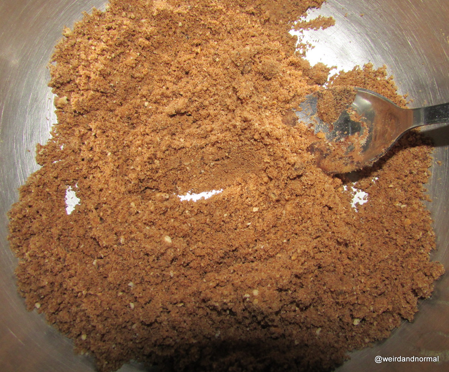 The entire mixture should be mixed well so that all the ingredients blend together and the mixture turns brown in color.
